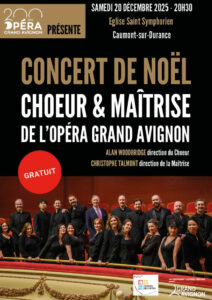 Laissez-vous porter par les sonorités de l’orgue lors d’un récital interprété par Alain Vernet à l’église Saint-Symphorien de Caumont-sur-Durance. Une parenthèse musicale enchanteresse pour célébrer les fêtes et faire durer la magie de Noël. Parcourez trois… Solaire et captivant, Walid Ben Selim prête sa voix puissante aux grands noms de la poésie soufie. De la douceur à la rage, avec une intensité et une sensibilité exceptionnelle, Walid Ben Selim et Marie-Marguerite Cano… Des livres et albums jeunesse à tout petit prix ! L’association Lire c’est partir, bien connue pour rendre la lecture accessible à tous, s’installe le temps d’une journée à la médiathèque pour vous faire découvrir ses nouvelles… Le Chœur Cantabile sous la direction de Renaud Brès viendra donner un magnifique concert "En suivant l'étoile" à Caumont-sur-Durance. Billetterie en ligne sur le site www.choeurcantabile.com et sur place. Le concert "En suivant l'étoile" Avec “En… L'Écurie le Pas du Loup présente le Noël à l'écurie dans le cadre de Bienvenue à la Ferme. Programme Programme hiver bienvenue à la ferme Décembre 2025 Français pdf 858 Ko Feuilleter Consulter Télécharger Artisan et… Pour cette 10e édition le thème des lectures seront autour de la thématique "du coquelicot au béton". Villes et campagnes ont parfois des allures de camps retranchés, on quitte l’une pour l’autre, on est de l’une… Le CMA Formation – Avignon, c'est l’endroit idéal pour se former aux métiers de l'Artisanat du CAP au Bac+2 : boucherie, boulangerie, pâtisserie, coiffure… Inscription obligatoire 04 90 80 65 70 – 04 90 80 65… À l'occasion de la nouvelle année, le Maire et son Conseil Municipal ont le plaisir de vous inviter à la cérémonie des Vœux de la municipalité, suivie par un verre de l'amitié. Services de la Mairie… Le Service Jeunesse et le Club de Stratèges propose un après-midi convivial pour jouer en famille ou entre amis à divers jeux de société. Le Service Jeunesse et le Club de Stratèges proposent une soirée jeux conviviale pour jouer en famille ou entre amis à divers jeux de société. Moment symbolique et républicain, le Conseil municipal remettra aux jeunes caumontois leurs premières cartes d’électeur. Services de la Mairie Mairie de Caumont-sur-Durance +33 (0)4 90 01 20 20 Contacter par courriel Hôtel de ville Place du… Le Service Jeunesse et le Club de Stratèges propose un après-midi convivial pour jouer en famille ou entre amis à divers jeux de société. Pour débuter cette nouvelle année, venez découvrir "Un de la Canebière", la célèbre opérette marseillaise de Vincent Scotto. « Un de la Canebière » : pour débuter la nouvelle année, une soirée aura lieu à la… Découvrez et testez des métiers qui vous correspondent ! Ce forum, dédié à la découverte des métiers et des formations en alternance, s’adresse aux jeunes, aux familles et aux professionnels, avec pour objectif de favoriser l’accès… Venez nombreux et découvrez les produits des entrepreneurs du Grand Avignon sur le Marché de Noël Créativa. _Autres services Grand Avignon +33 (0)4 90 84 47 00 Agroparc BP 1259 84911 Avignon Cedex 9 www.grandavignon.fr La chorale du Chœur des Collines présentera un magnifique concert de Noël à l'église Saint-Synphorien. Associations Le Chœur des Collines +33 (0)6 81 94 74 74 Contacter par courriel Hôtel de Ville Place du 8 mai… La maison des associations a le grand plaisir d'être, encore cette année, un point de collecte pour les merveilleux Sacs de l'Avent ! C'est le moment de faire partie d'une chaîne de cœur et d'offrir un… Le Chœur et la Maîtrise de l'Opéra Grand Avignon viendront jouer un magnifique concert de Noël à l'église Saint-Symphorien. Le Chœur de l’Opéra Grand Avignon, composé de 20 artistes permanents sous la direction d’Alan Woodbridge, travaille… Le lycée Pétrarque d'Avignon ouvre ses portes samedi 13 décembre. L’équipe du lycée Pétrarque Avignon organise sa matinée portes ouvertes le samedi 13 décembre 2025 de 9h à 13h. Le lycée Pétrarque est un lycée agricole,… Chaque année, le CCAS propose aux Caumontoises et aux Caumontois de 75 ans et plus un spectacle-goûter. L'occasion aussi de retirer son colis de Noël. Inscription obligatoire auprès du CCAS avant le lundi 1ᵉʳ décembre. Bulletin…